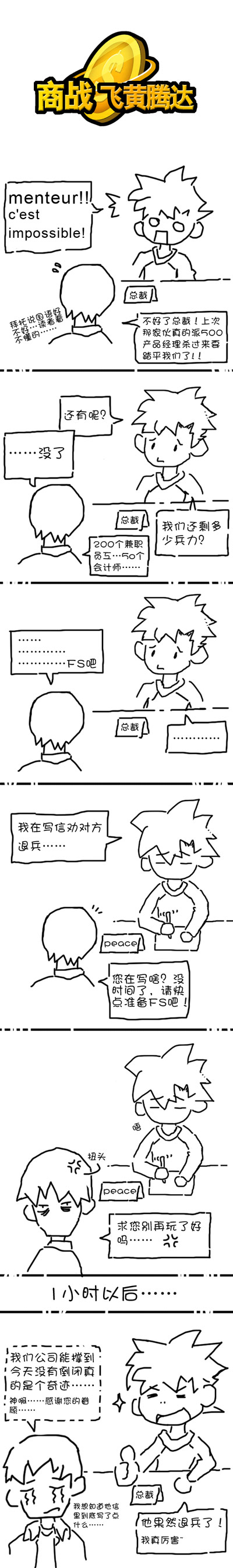 首款免费创业网游《商战飞黄腾达》,让你通过游戏来体验轻松创业的乐趣。玩家进入游戏后将直接扮演企业的CEO,通过不断扩大企业的规模,最终成为商界名人受万人仰慕。玩家在游戏中可以与对手展开激烈刺激的商战,成为新一代的商业巨鳄。高度拟真的企业架构,独具特色的游戏设定,让你在《商战飞黄腾达》的世界里感受到最真实的创业乐趣!