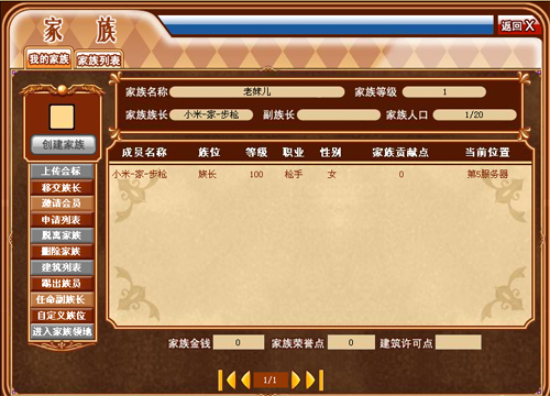 怀念一群人嬉笑打闹的温馨小家吗?想要仗剑天下与战友生死共度吗?赶快创建属于自己的家族。虽然在1.0版本中,家族的功能还只限于聊天,但后续版本中,玩家将可以建设专属家族领地。领地的功能性建筑需要家族金钱和家族荣誉点,还有建筑许可点。做到这些需要玩家的共同维护和建设,家族系统就是玩家网络中的家,在虚拟的世界里谱写自己的历程,打造实实在在荣辱与共的大群体,扞卫家族的荣誉!