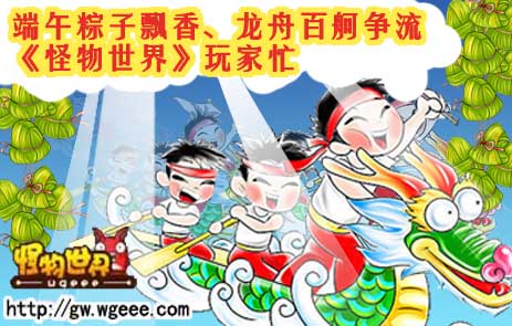 又快到五月初五我们一年一度的端午节了,这是我们中国特有的传统节日,人们会在这一天吃粽子、赛龙舟来纪念我们的**诗人屈原,同时还会挂菖蒲、艾叶,薰苍术、白芷,喝雄黄酒,则据说可以压邪。在这个节日期间,《怪物世界》公民们更会好好来纪念我们这一传统节日呢。《怪物世界》会在端午节倾情奉送很多让大家惊喜!