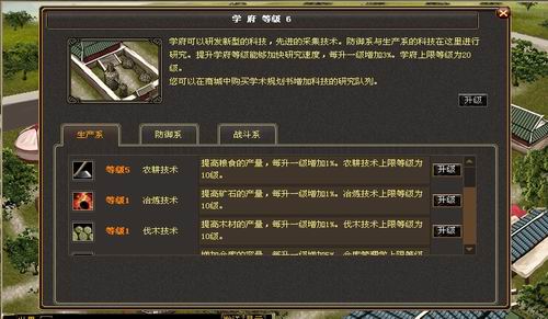 学府好地方,这里面可以提升生产,防御,军事,一系列的对自己能力提高效率的能力数值。玩家之间未来战争拼的就是这里的科技,学到科技和兵多在这里就可以雄霸天下。