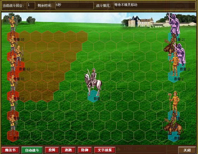战斗: 战斗暂时由探索触发,对方兵力大概为英雄所带兵力的80%,选择开战则进入战斗,选择逃跑则放弃战斗.只开放自动战斗功能,手动战斗和逃跑投降功能还未开放.