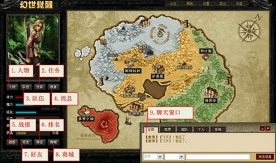 9.聊天窗口 : 可以查看游戏中你和其他玩家的聊天内容,以及系统提示.解除聊天窗口最小化后,可以与其他玩家交谈.