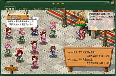 在聚魂塔里,可以挑战他人魂魄,只要胜利后,就能够摄取他人的魂魄.摄取成功之后还可进行蹂躏和安抚等等好玩的操作,并从中获得经验奖励等好处.同时玩家还可以找帮手来聚魂塔中为自己助阵,提升自身战斗力.
