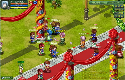 突然,系统提示一群**闯进沁春园妄图抢亲。于是乎现场的宾客们纷纷出动,群起而上,将这些胆大的**们逐个歼灭,保护了新郎和新郎的安全。同时**的身上也掉落了不少丰厚的物品,比如喜糖、喜饼、VIP贵宾卡等等。现场宾客无不满载而归。新郎新郎也一起向现场的宾客表示了深深的谢意。