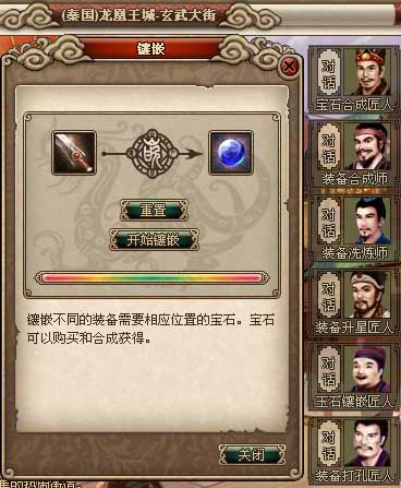 玩家可以在一件有孔的道具上镶嵌宝石,使宝石赋予该道具额外的属性项和属性值。