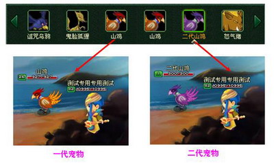 玩家抓获的宠物均为一代宠物,通过一代宠物培育出来的宠物为二代宠,它们的初始属性以及外观颜色都和一代宠不同: