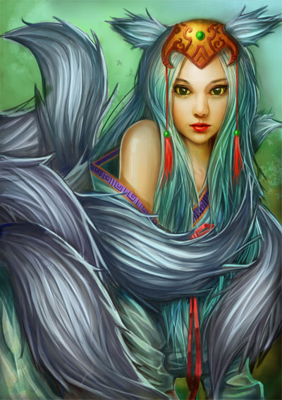 九尾妖狐:有九条尾巴的魔兽,每条尾巴都拥有特殊的能力,当其中一条尾摇动时可以召唤雷、火、风、地震、洪水、死者和小妖狐等,同时九尾也带表了九个灵魂。