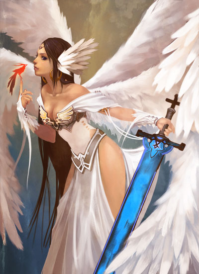六翼天使:曾位列众天使之首,只有灵质和魂,没有肉体,若是必须现身于人前时,是以六翼四首之姿出现。曾因嫉妒神有肉体,率领占总数三分之一的天使与神展开激战,被击败后,成为堕天使。其拥有相当于神的七分之六的灵质力量,能在很短的时间里召唤出大量魔物。