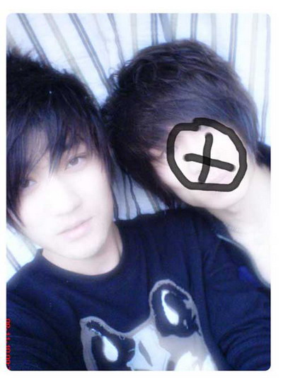 萝莉De大大,上来就摆了几个90代滴POSS,并给右面那哥们儿P上个象征颓废滴造型,这才把整张照打造出了颓废硬照滴效果