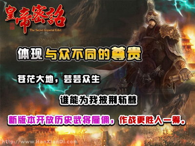 年度无端网页游戏大作《皇帝密诏》,带你体验真实的三国战役,更有众多历史上的名将为你效命。