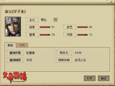 只有得到了[介绍信]之后,才能探听得知历史武将的信息。