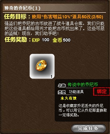 据乔尼先生说,这枚古币是遗失在某个炮火喧嚣的战场上的,隐藏在各种战斗道具中,大伙要收集一定数量的道具,就能帮助乔尼先生拿回古币啦!每个星期都有七个道具日,系统将会分别安排七种道具。玩家们每日使用当日指定道具数量达到50个,就可以获得古币一枚;凑够一定数量的古币,就可以获得强化石等丰厚奖励哦!