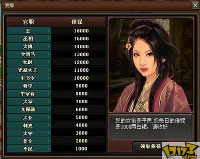 吏部是国家官员领取俸禄的地方根据品级可以每天领取到相对应的俸禄。
