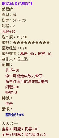 看这名字,他的武器就不难猜了,你说的对!就是万石弓!,他的万石弓让人无比羡慕,可以说是game2一区第一把万石!,4个40%以上暴倍,1个+25暴击,完美属性羡煞旁人,因为命中关系,他插了30命中宝石。配合帽子全命中,鞋子全暴击,一身远程装备挑不出一点毛病,无愧于天下20强的名号!