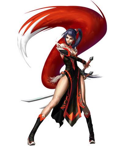 接下来看到的这张则是《狐仙》故事背景中妲己战斗时的装扮。此时的妲己衣着十分轻盈飒爽,身后的红色狐狸长尾标明了她狐仙的身份。冷酷的眼神充满杀气,而嘴角又带有一丝微笑。双手紧握腰间的利刃,随时准备向敌人发起致命的攻击!