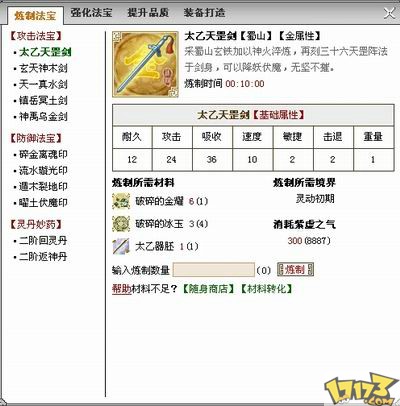 游戏的第2个核心,法宝系统,分别为攻击法宝,防御法宝,灵丹妙药,分别是攻击,防御,补充作用,这些都是修要靠购买,采集,来炼化而成,其中强化法宝是2件一样的法宝合并也就是1+1=2的效应。