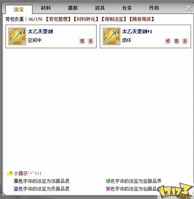 游戏中的武器法宝,任务道具都在这里可以查看到。