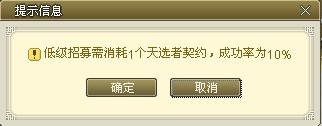 选择低级凝练,消耗一个“天选者契约”,招募“天选者”的成功率为10%