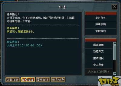 小唯最喜欢做的就是答题任务,在玩游戏的同时还可以温习下历史知识。。哈哈,原谅小唯的臭屁吧!其次就是日常任务,属于不用投入,“勤奋”就有收获的!!!(P.S:小唯就是一个吝啬鬼~)