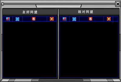 可以点开同盟关系的查看面板,查看本联盟的友好联盟和敌对联盟的情况。(如图)