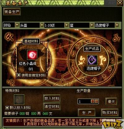 游戏中生产系统就是打造升级装备系统。在丢进装备,加如道具就可以出成品,和其它同类游戏大相径庭。