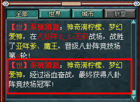只要参与竞技场PK的玩家,都可以获得荣誉值,荣誉值是建造封地图腾的必要条件,封地图腾可给封地带来丰厚的加成,并可建造高级兵种,对于后期发展的影响起着很重要的作用。在竞技场中,会根据晋级的次数,战斗杀敌数来判定荣誉值获得的多寡。八卦阵冠军无疑是活的荣誉值最高的,此外,获胜的消息还将在聊天窗口公布,供万人敬仰。