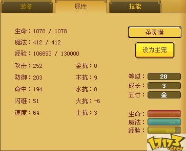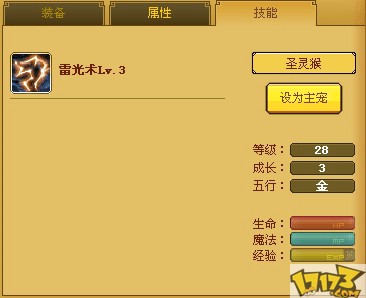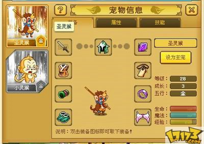 ·宠物 游戏中的宠物分主和副2只,这里可以看到宝宝的装备和属性,以及技能。