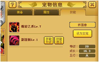 进游戏后,首先要选定自己主宠,就是今后就练它,当然中途可以改练其它系的主宠,不过花费的精力与时间、金钱是比较多的。