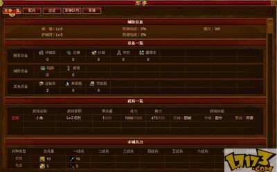 武将界面,布局合理,游戏中的人物穿着展示的也很到位,官职系统让玩家更注重武将的能力培养。官职越高带兵月多。