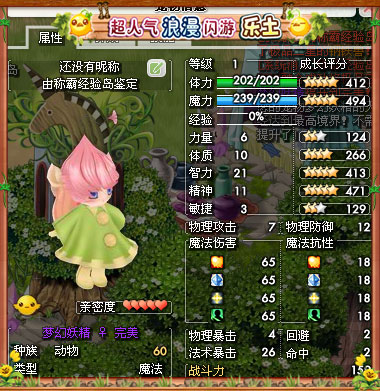 梦幻妖精是《乐土》中资格较老的Q版宠物。它有着洋葱一般的发型,圆乎乎的脸蛋以及不俗的成长评分。无论是女玩家们自己携带,或是用来送给自己的好友都是不错的选择。