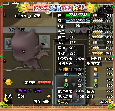小灵兽属于精神型宠物,具体外形以及成长评分如下:
