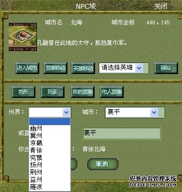 在世界地图中玩家营寨的移动范围是被限制在九大州各自的区域内的,只有通过驿站,玩家的营寨才能实现跨州移动。同样的,玩家的军团也只能攻击相同区域内的其他玩家的营寨。