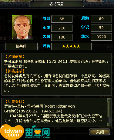 活动内容:活动期间,玩家发展壮大,通过军校查询名将坐标,派兵抓捕,让二战中的超级名将成为你的手下。名将的属性之高,一定让您惊呼:值!真值!