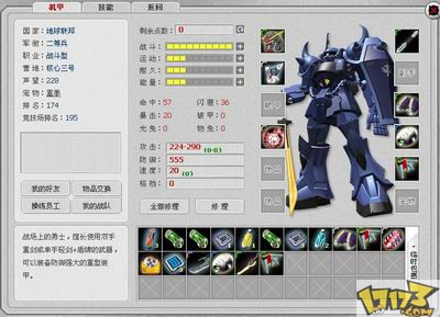 《机甲归来》的战斗系统采用的是普通的文字战斗方式,并没有什么出彩的地方。战斗耗费动力值,动力值耗完以后,战斗经验锐减,且无法使用自动战斗功能。