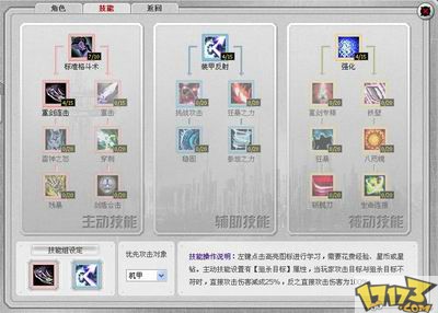 不同职业具备不同技能,技能分主动、辅助、被动三种。被动技能学习了就自动生效,主动和辅助技能需要装载,在战斗中发挥作用。
