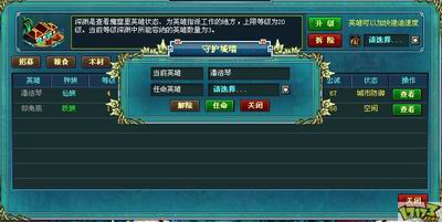 英雄设施有酒肆和深渊两种。酒肆是招募英雄的场所,每次刷新5个英雄。酒肆等级越高,刷新间隔越短,出现的英雄能力越强。要容纳更多英雄,必须提高深渊等级,另外深渊还能为英雄指派工作,空闲的英雄可以在这里指派各种资源、人口或者城防工作,提高相应工作的效率。