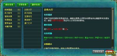《西游战记》拥有新手帮助,通过这一功能,玩家能够快速上手,了解游戏的主要功能。游戏中的任务共有成长任务、日常任务、副本任务三类。成长任务主要让玩家在设施建造或升级等行动后获得资源奖励,不至于断了炊,日常任务是每天在玩家完成野地掠夺、占领等行动后给予宝物之类的奖励。比较有特色的是称号任务,玩家在征召军队或缴纳资源完成称号任务之后,可以得到称号或是晋级称号,从而才能开设更多分城,同时也开启某一难度的副本。