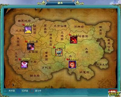副本是《西游战记》的另一特色,不少副本都是根据《西游记》中的著名故事改编而成。副本分为若干关卡,玩家必须带领部队闯过所有关卡以后才算通过副本。进入副本以后无法逃跑,所以可以先派一个小兵进去探探路,看看自己实力是否足够。副本完成以后奖励丰富,包括大量经验、黄金、资源、道具等等,每天副本开启的次数有限。