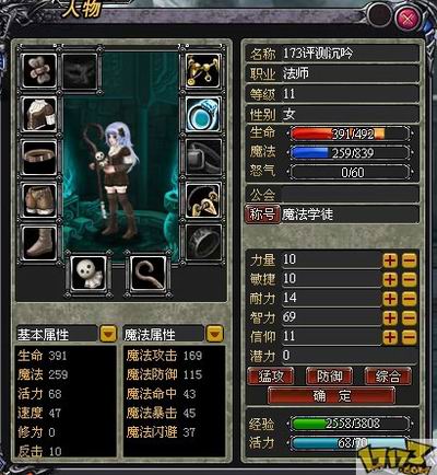 人物有力量、敏捷、耐力、智力、信仰五种属性,力量和智力分别影响物理和法术攻击,耐力提高生命和防御,敏捷和信仰增加速度,另外分别增加物理或法术的命中、闪避和暴击。在升级加点的时候,游戏提供了猛攻、防御、综合三个按钮帮助玩家分配属性点。