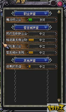 另外,游戏还提供了称号和声望系统。人物在游戏中完成任务后,便可以获得相应的称号。称号可以给人物附加某些属性,不同的称号附加的属性不同,但只能选择显示一种激活。玩家在游戏里会遇到各种各样不同的阵营势力,完成他们委派给你的任务,会提升或降低你在对应阵营的声望。声望达到一定等级就能开启奖励丰厚的任务。