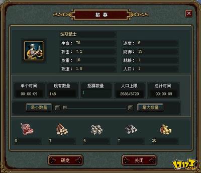 外城是建设资源建筑和刷经验怪的地方,其界面和内城界面差不多,只是从右下方的地图窗口可以看到显示外城怪物的红点。资源建筑包括农场、伐木场、采石场和金属矿场四种,每种资源建筑都可以建造五处,分别对应粮食、木材、矿石和金属四种资源。