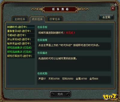 通过完成主线任务和成长任务,玩家可以迅速上手游戏。每完成一项任务,玩家都可以获得一定的资源或兵力奖励,对前期发展有很大帮助。日常任务主要是野战、竞技等战斗任务,完成后可以获得金币、兵力等奖励。