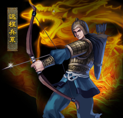 【远程攻击型】——弓箭手,特点在于他拥有令人生畏的远程攻击能力,可在敌方射程之外攻击对方,不但会有很强的攻击力,而且还不会受到近战兵种的反击伤害。但是其防御能力差,一旦被敌方近身,会对自己非常不利。