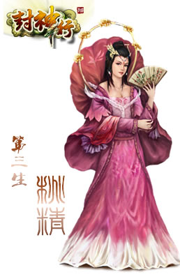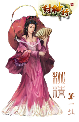 桃精:吾生于泽地,长于山林之间。沐日月之光,修千年之道。时光转瞬,人道渺渺,仙道莽莽,鬼道乐兮。汝自幼嬉戏于吾之樾,顿生爱怜之心。吾誓与尔三生而约,期来生得以比翼双飞之。