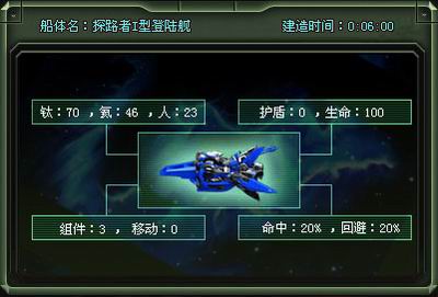 建造所有资源:钛:70 氦:46 人:23 ;船体信息:护盾: 0 生命: 100 ;组件:3 移动:0