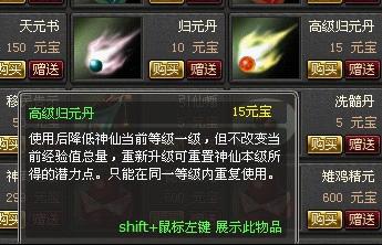 接下来再来就是高级归元丹。高归的作用就不多做介绍了,为了神仙强大必须好好的使用高归。