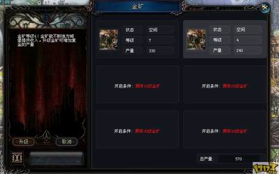 游戏分城内,和城外俩块。同时城内又分,内城,和矿区,矿区也就是资源,城市的发展大部分都靠这些资源发展。
