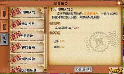 赏金任务:游戏任务,按上面的任务完成,得到相应的经验和金币奖励。