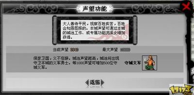 声望功能其实这功能就是为了防止早期新玩家不被老玩家欺负时所设置的,声望越高义军就越多。