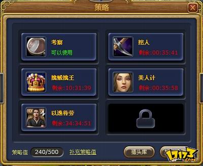 策略系统提供了非常多的策略技能给玩家使用,它们分为三个类型:考察技能、打击技能、防守技能。每次使用任何一种策略技能都需要消耗策略值,它能自动恢复也可以使用道恢复。策略使用不当可能会产生反效果;
